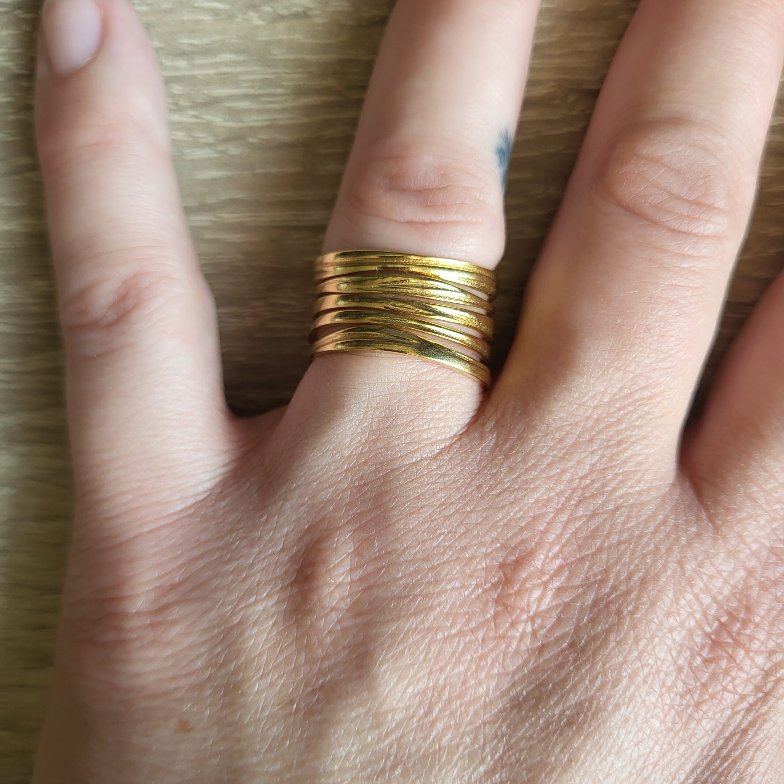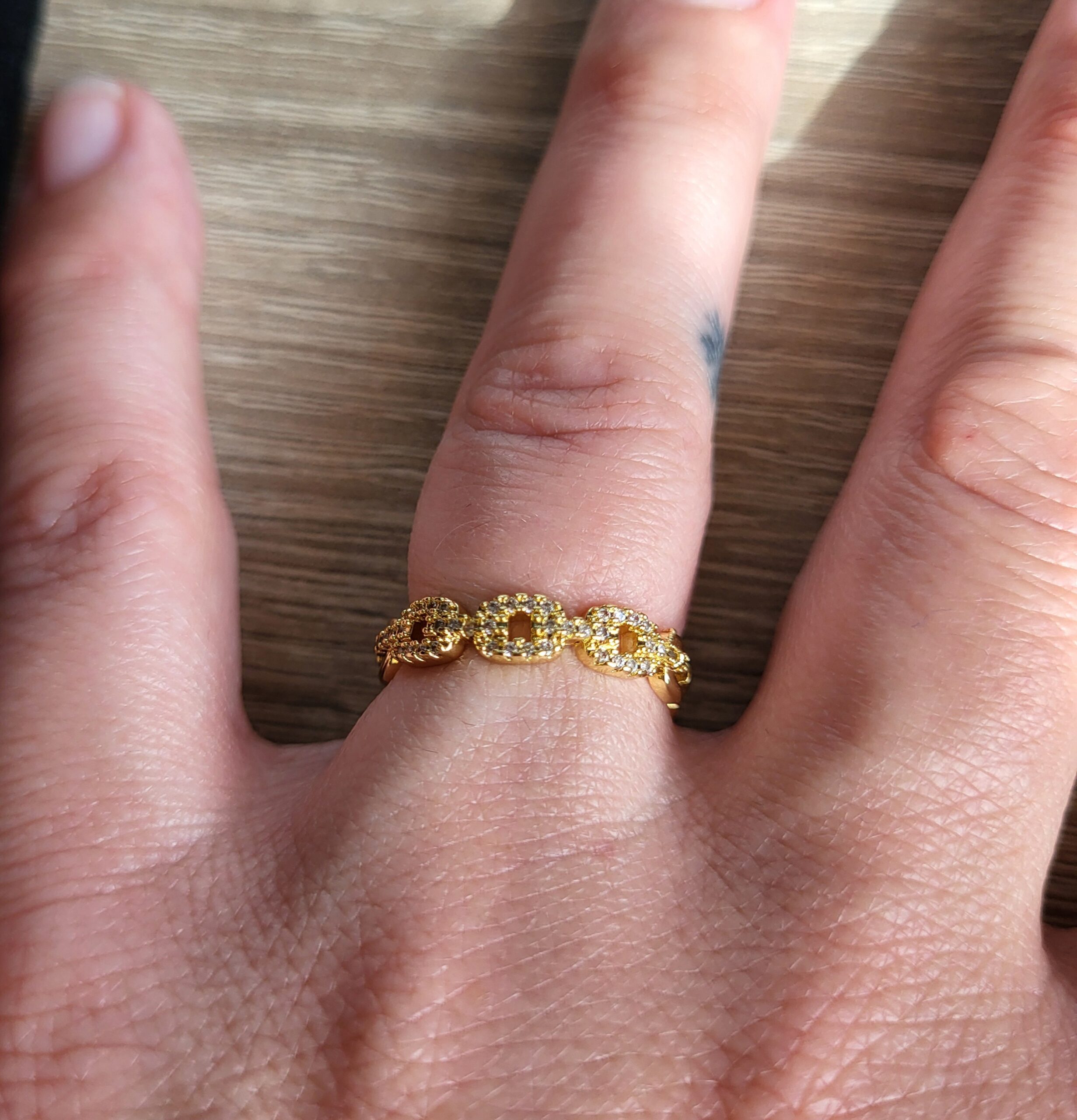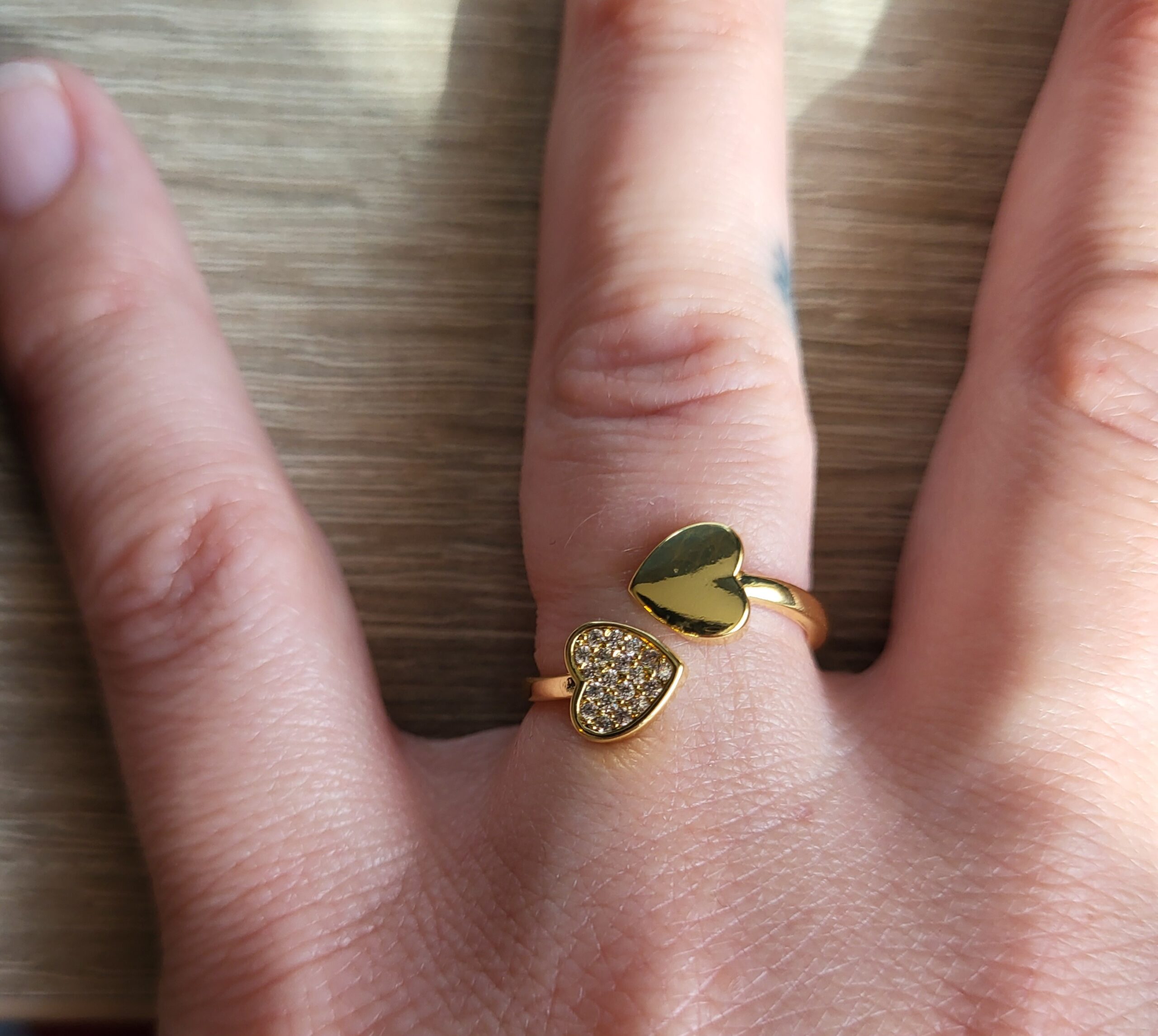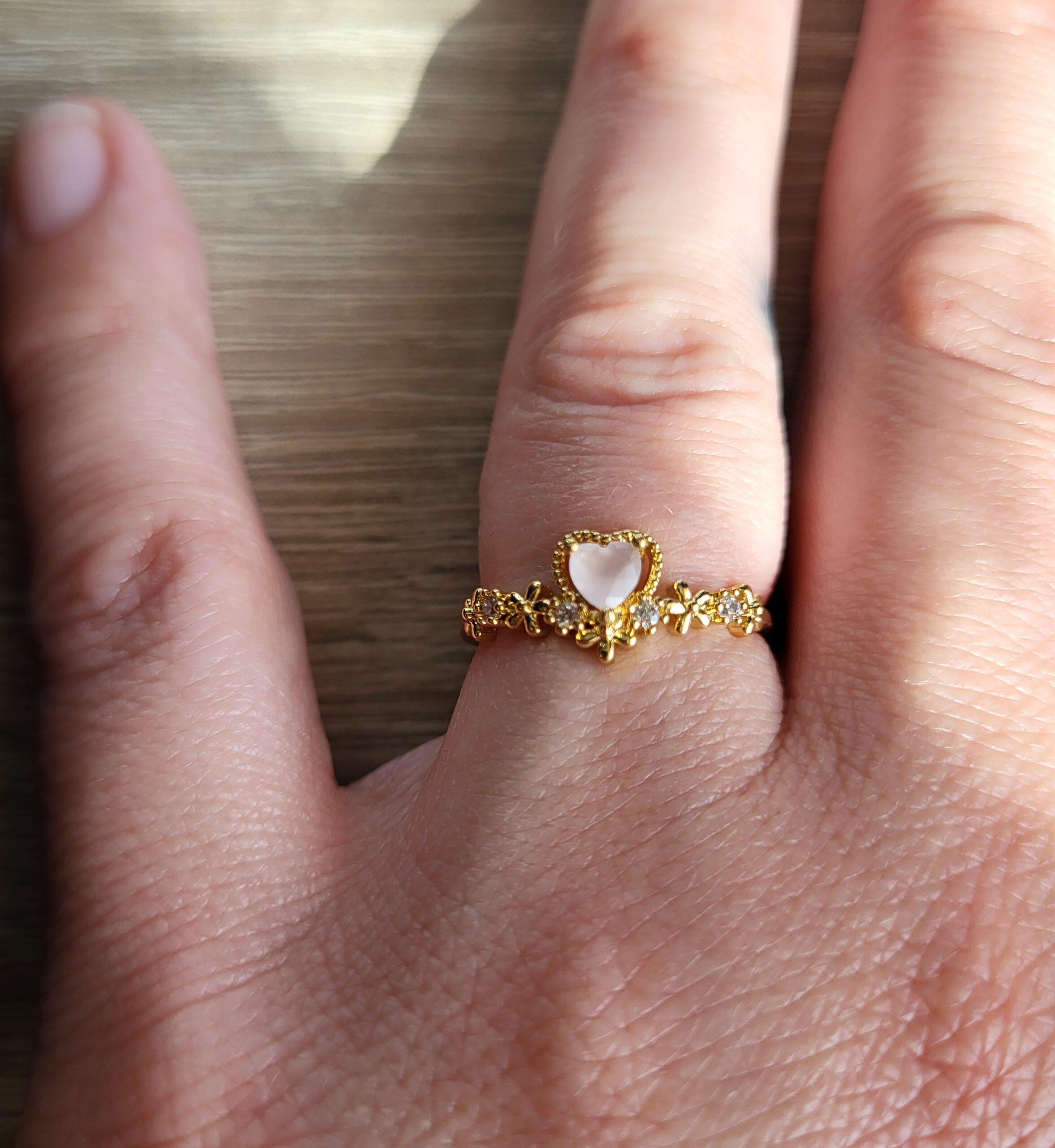 Verstelbare ring met schakelpatroon en wit emaille hartje