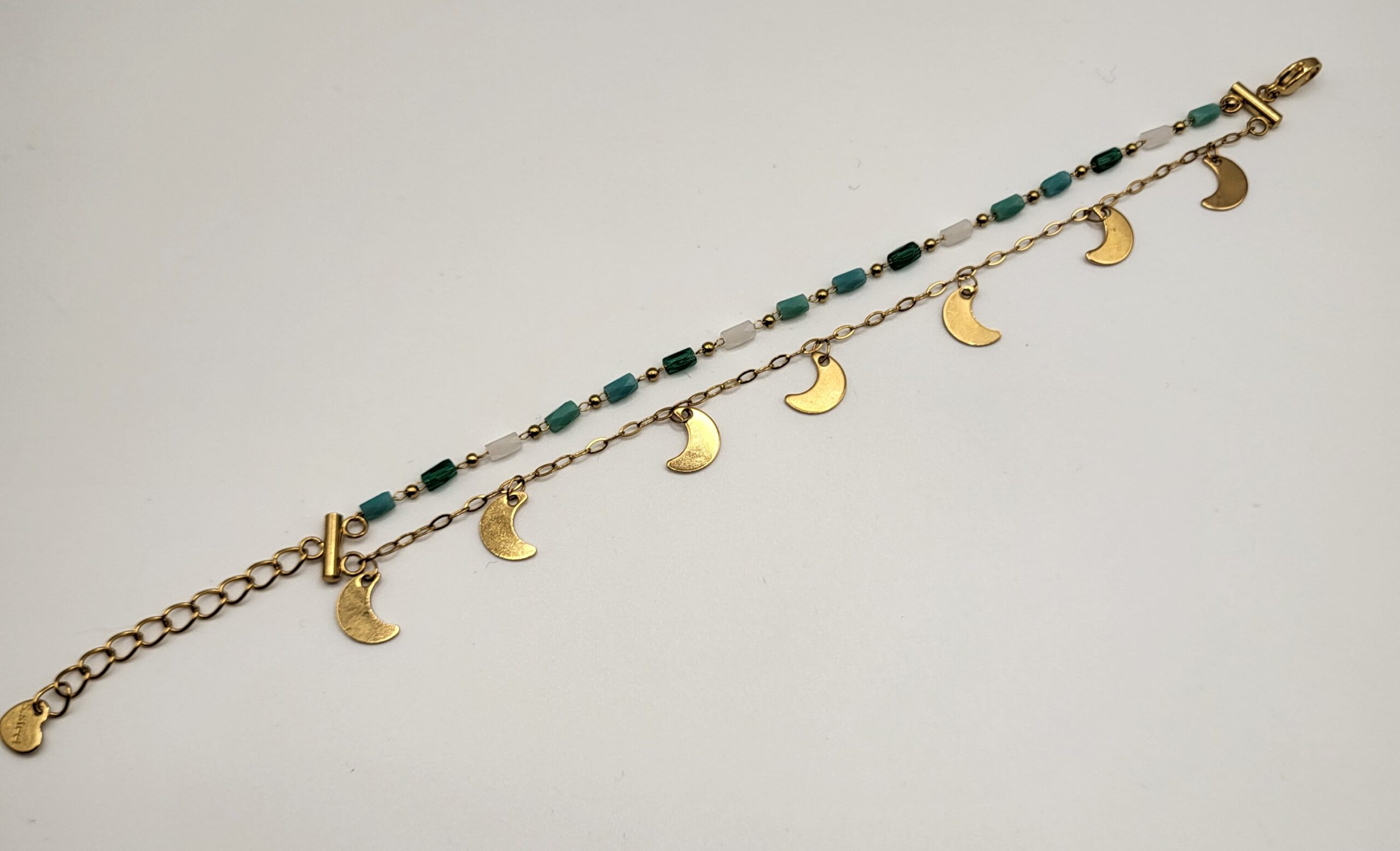 Goudkleurige armband van 2 lagen met bedeltjes, gemaakt van stainless steel. *Handmade