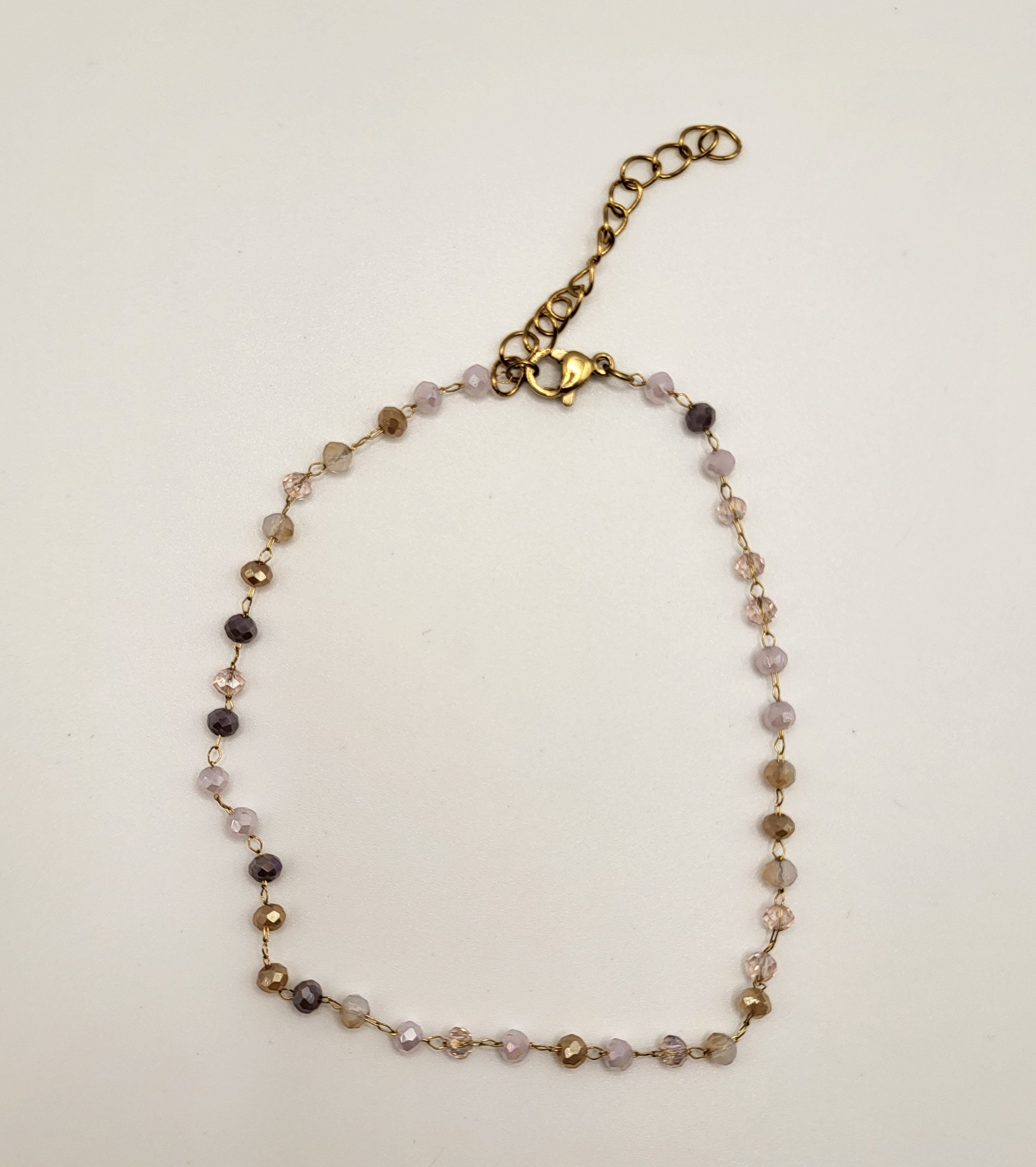 Goudkleurig enkelbandje met kraaltjes, gemaakt van stainless steel. De enkelband heeft een lengte van ongeveer 24 cm met een verlengstuk van 5 cm. *Handmade