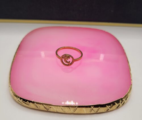 Grote, goudkleurige ring met hartjes, gemaakt van stainless steel. De ring is ongeveer 0,3 cm breed.