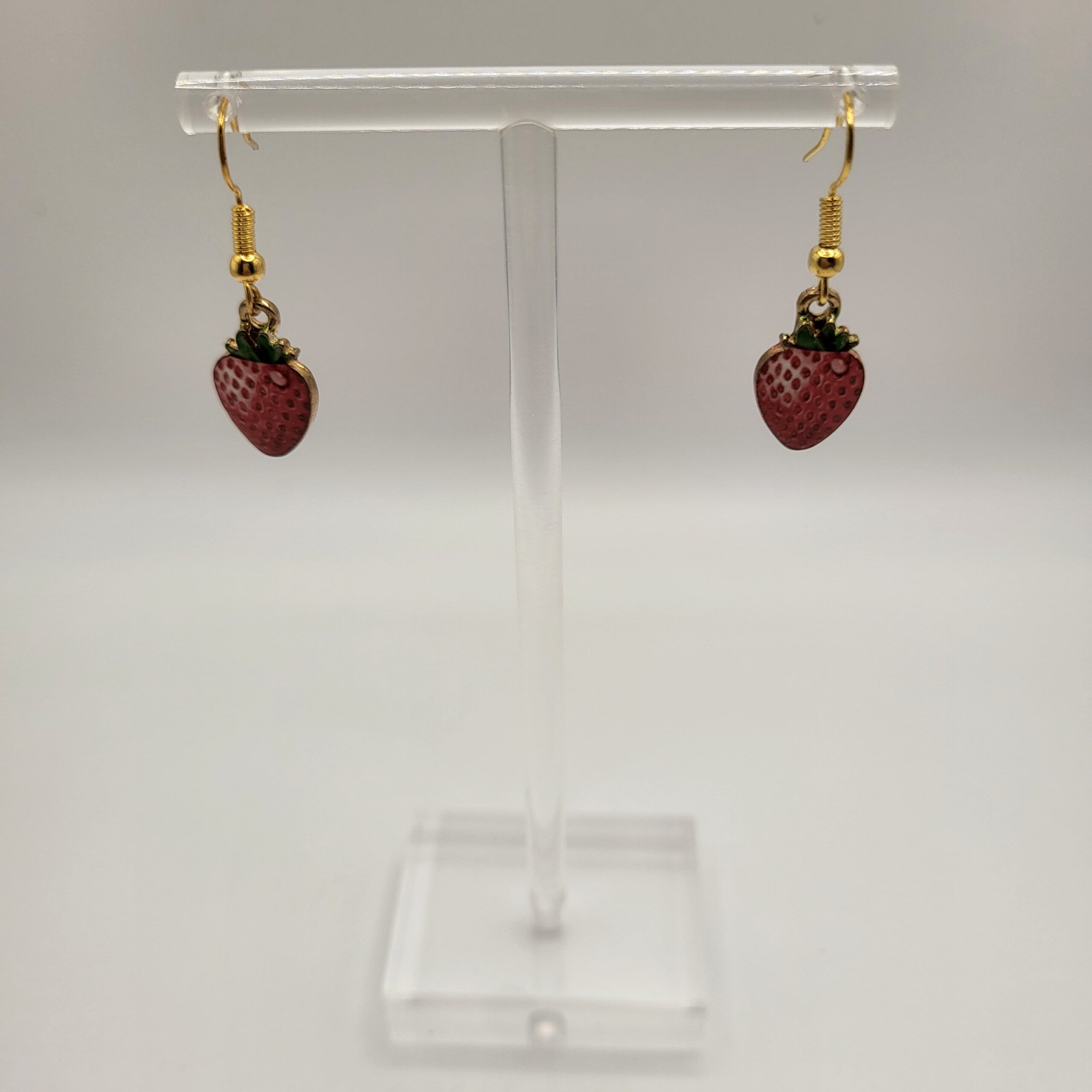 Goudkleurige oorbellen met aardbei hanger. De hanger is ongeveer 2 cm x 1 cm. *Handmade