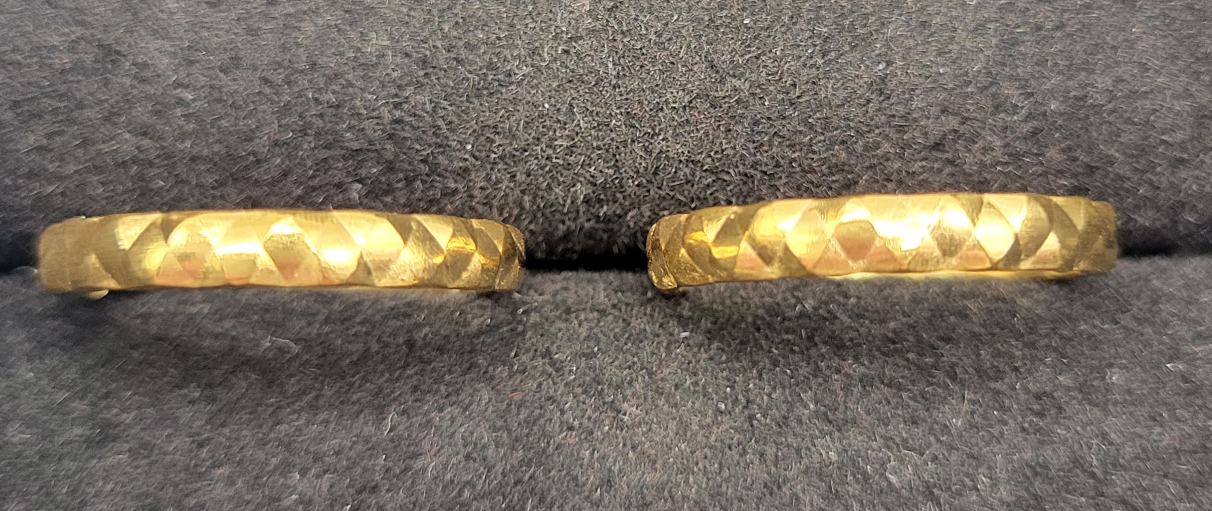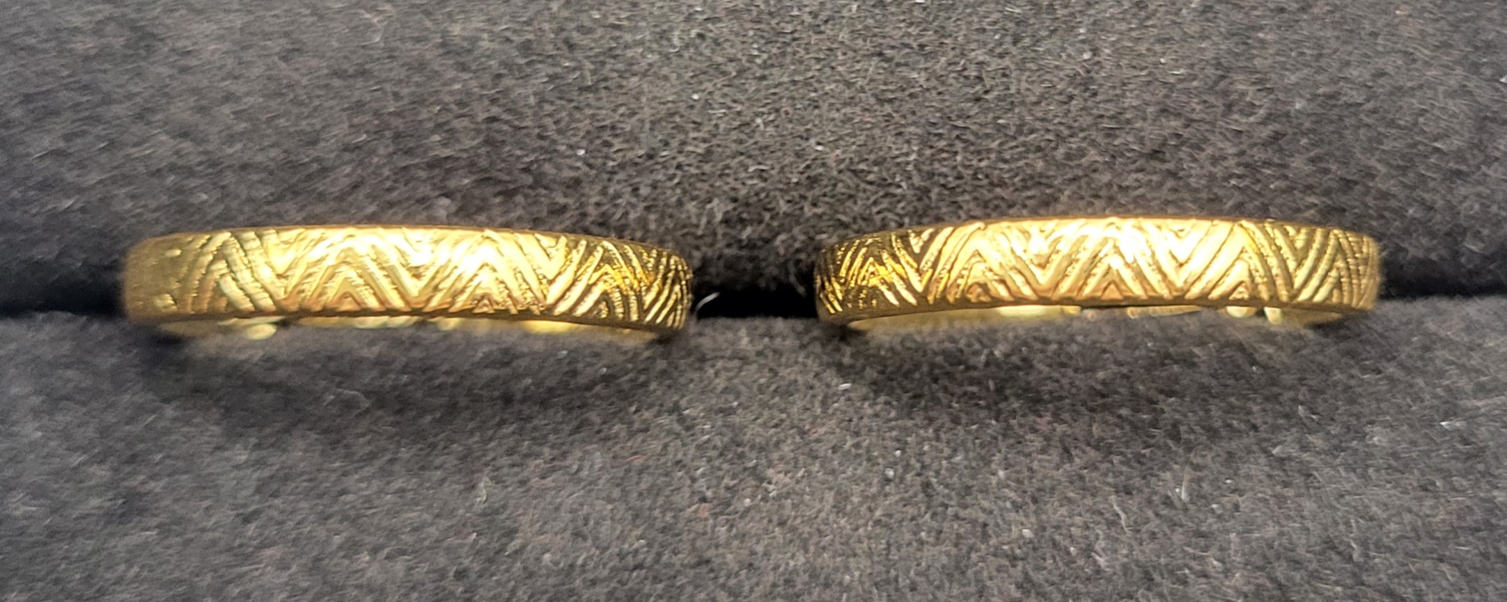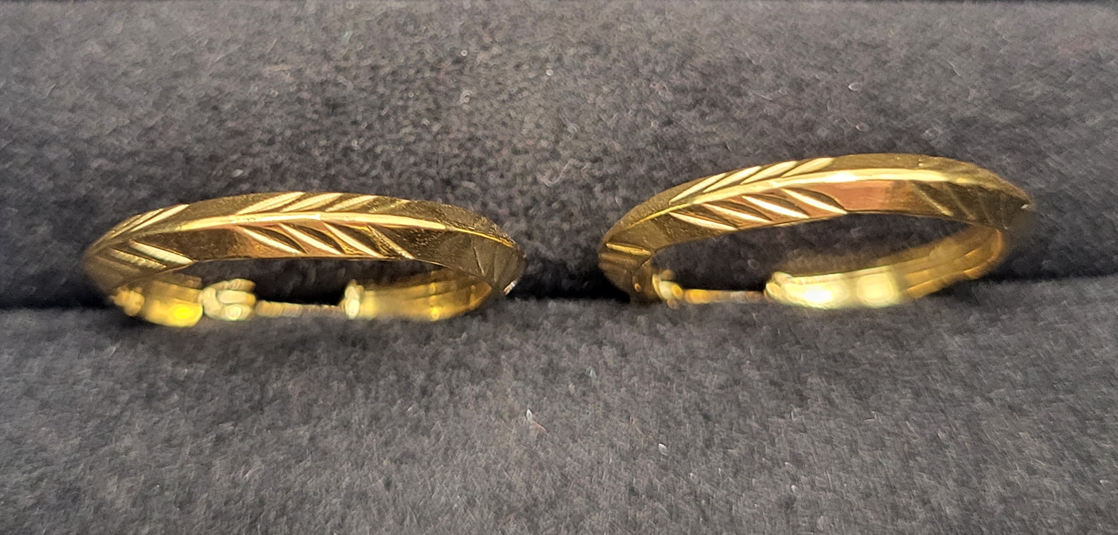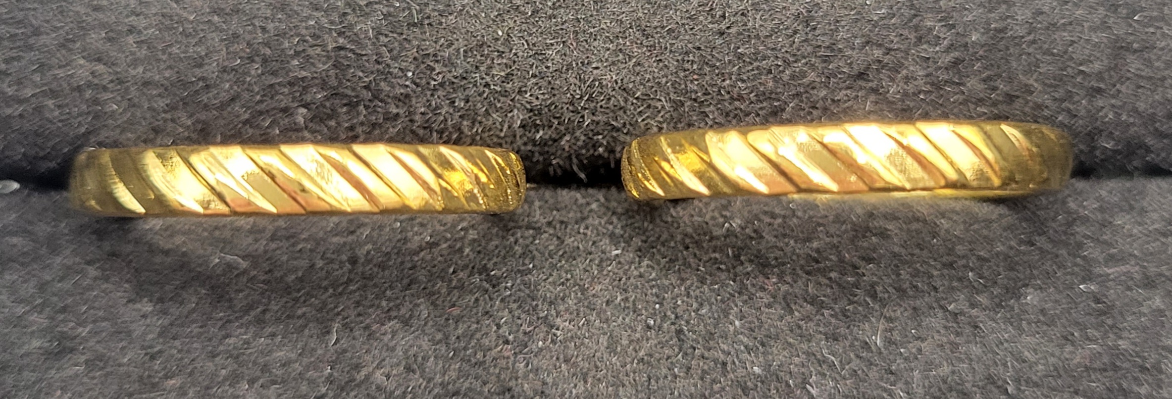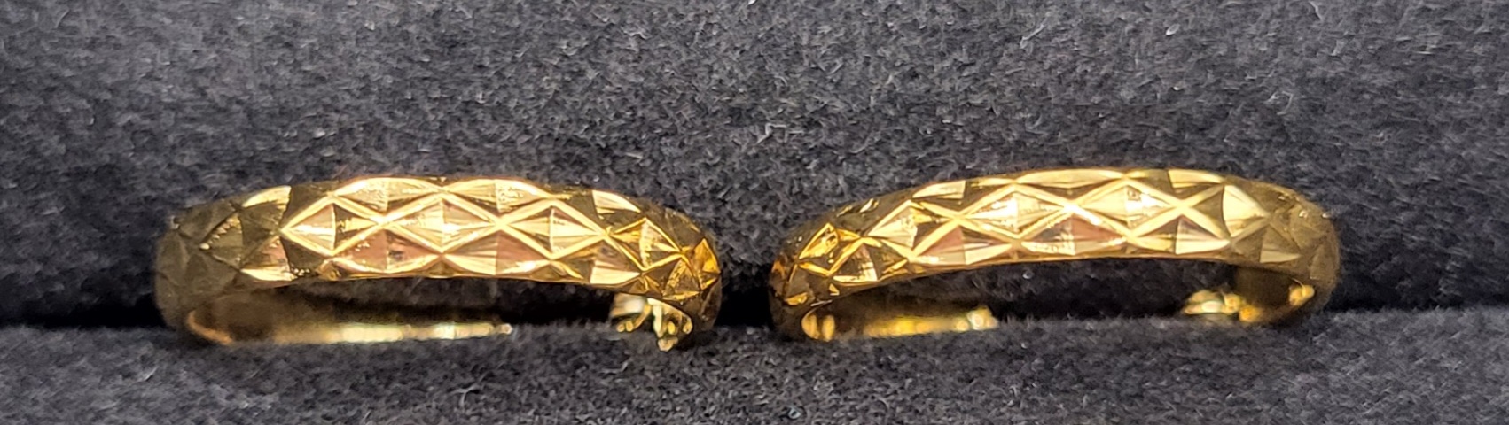 Goudkleurige oorringen met diverse patronen, gemaakt van stainless steel. De oorringen hebben een diameter van 2 cm.