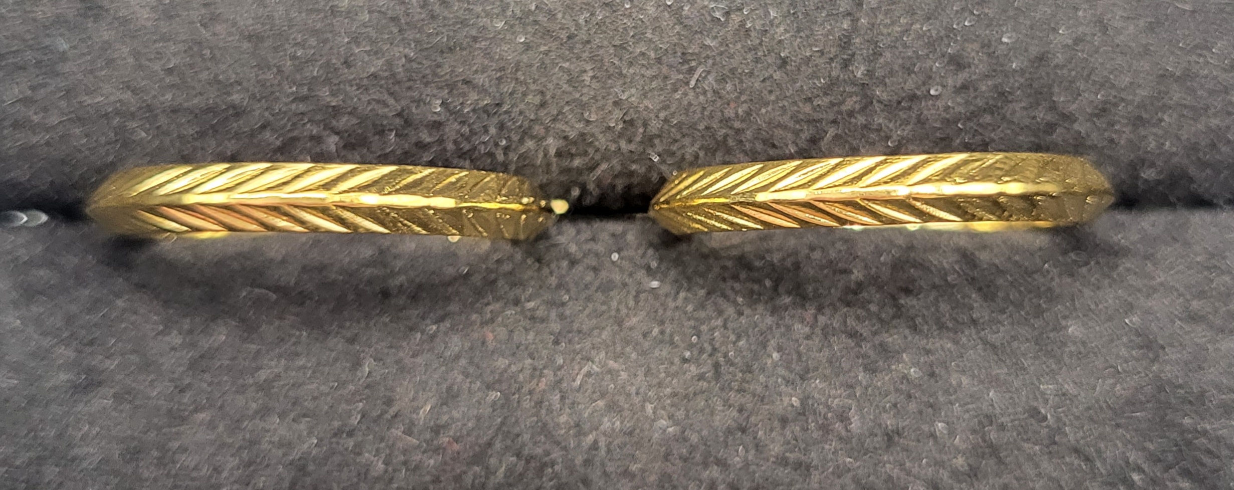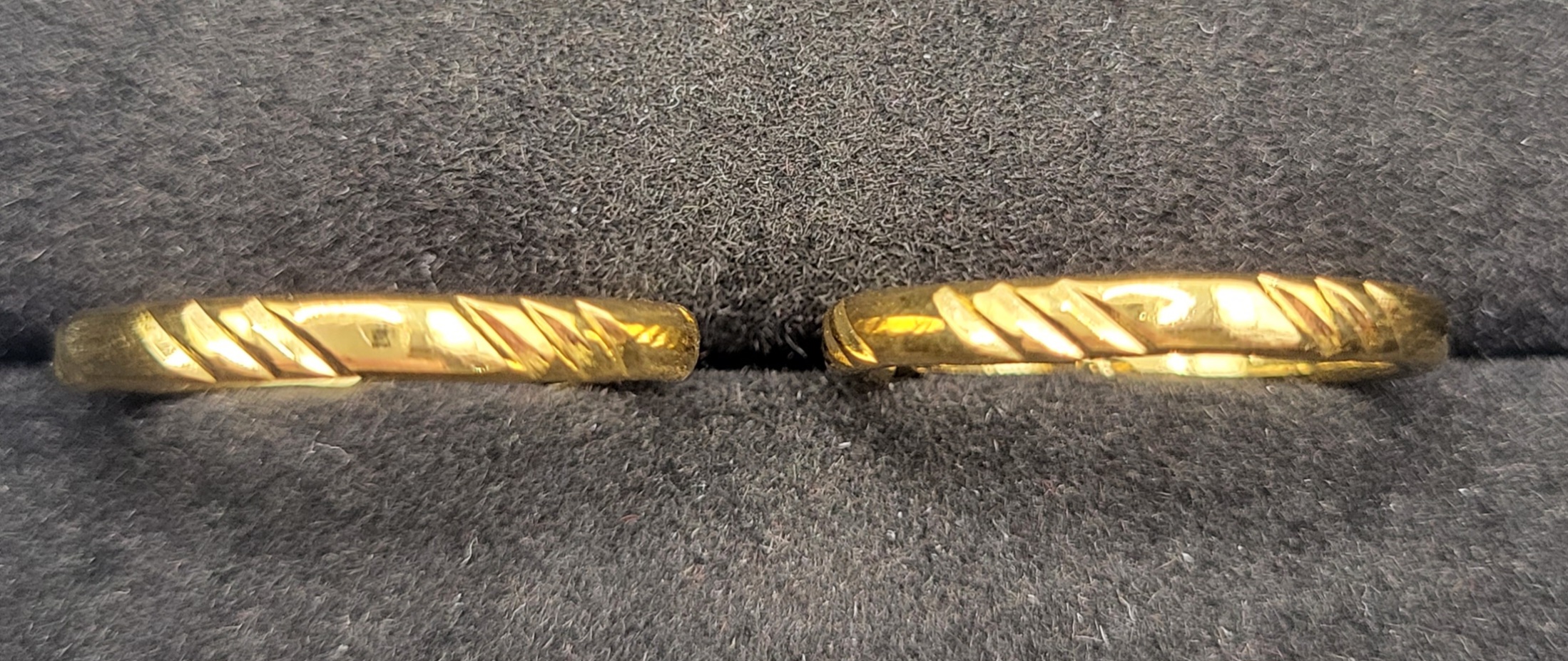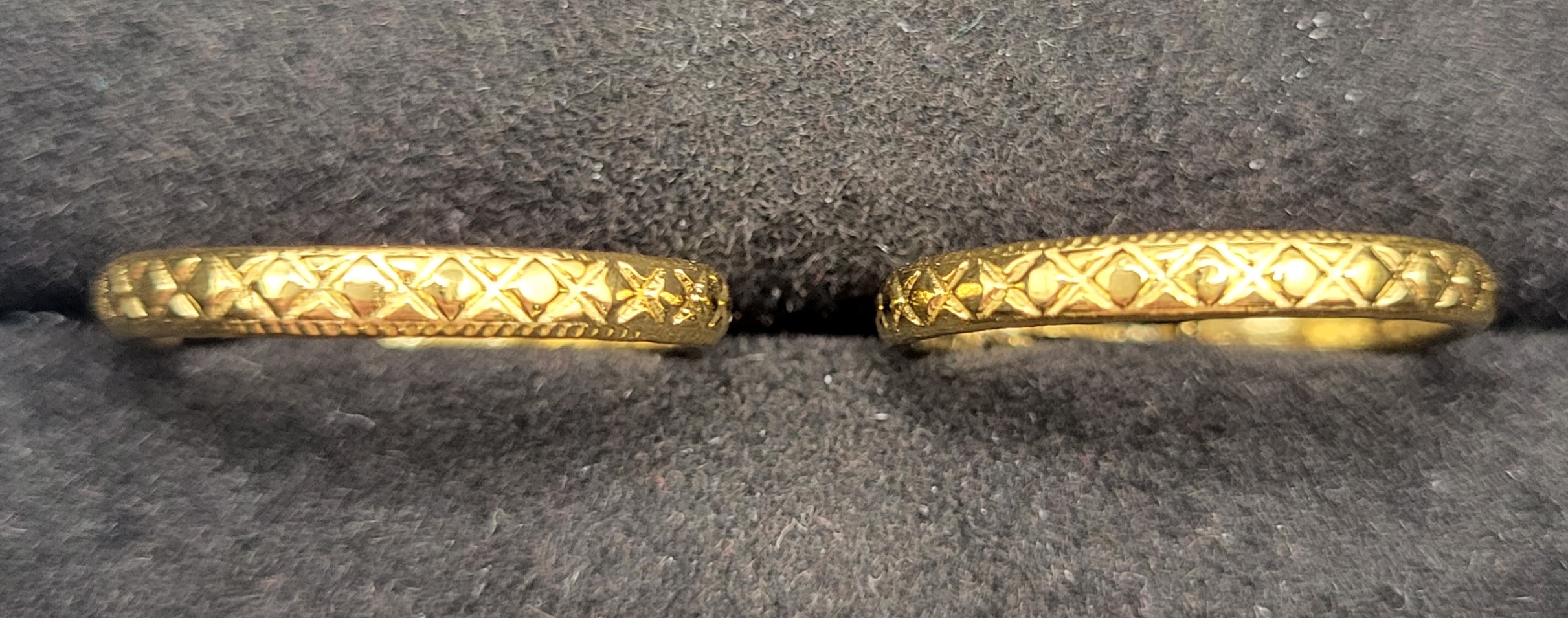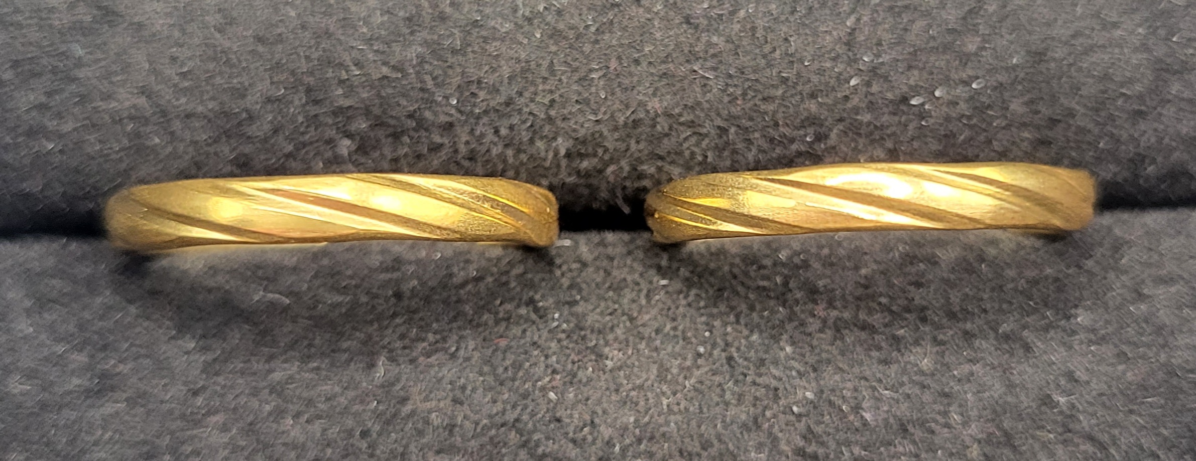 Goudkleurige oorringen met diverse patronen, gemaakt van stainless steel. De oorringen hebben een diameter van 2 cm.