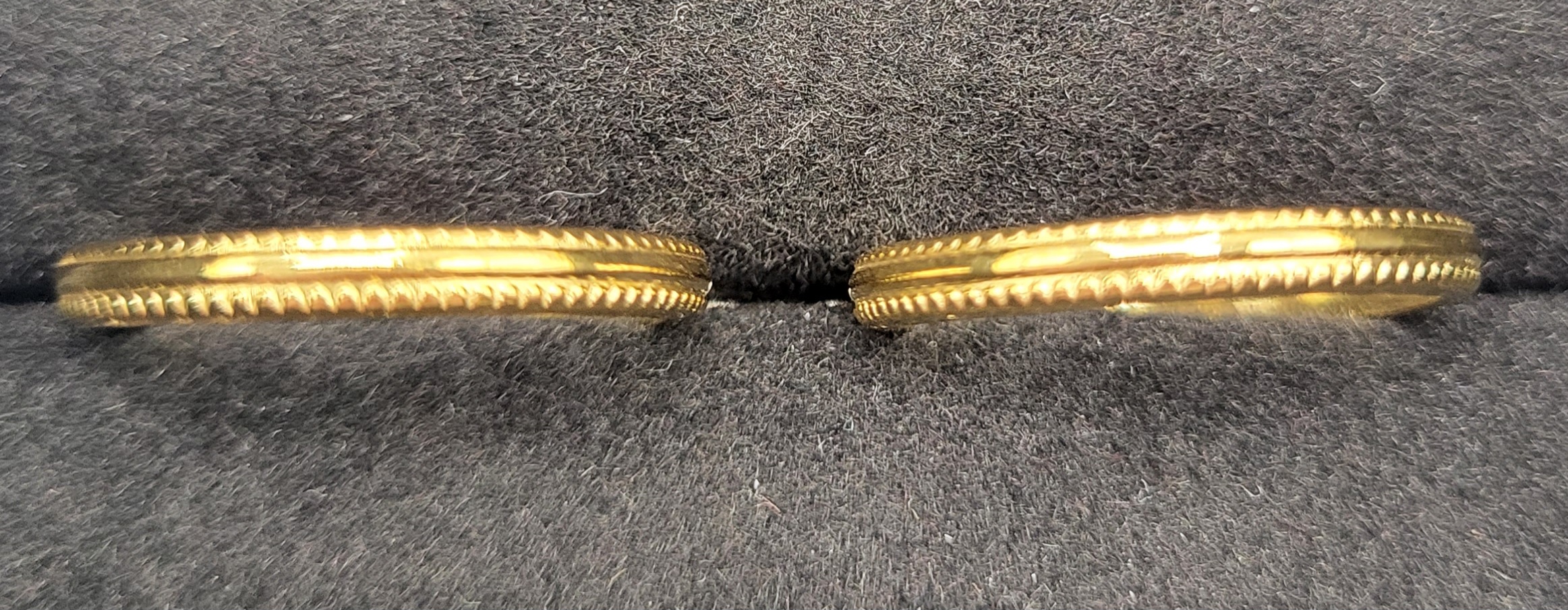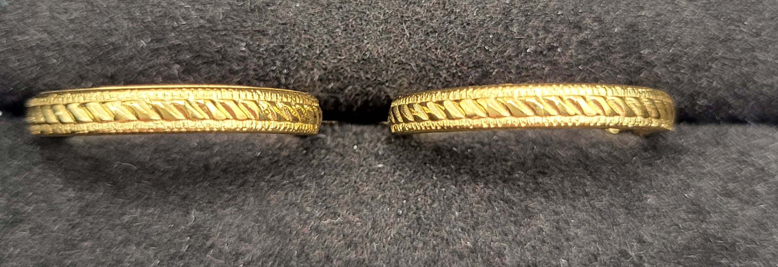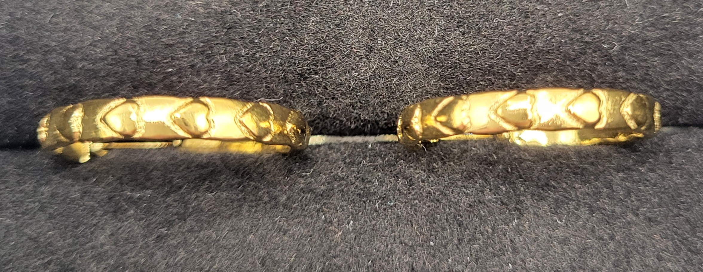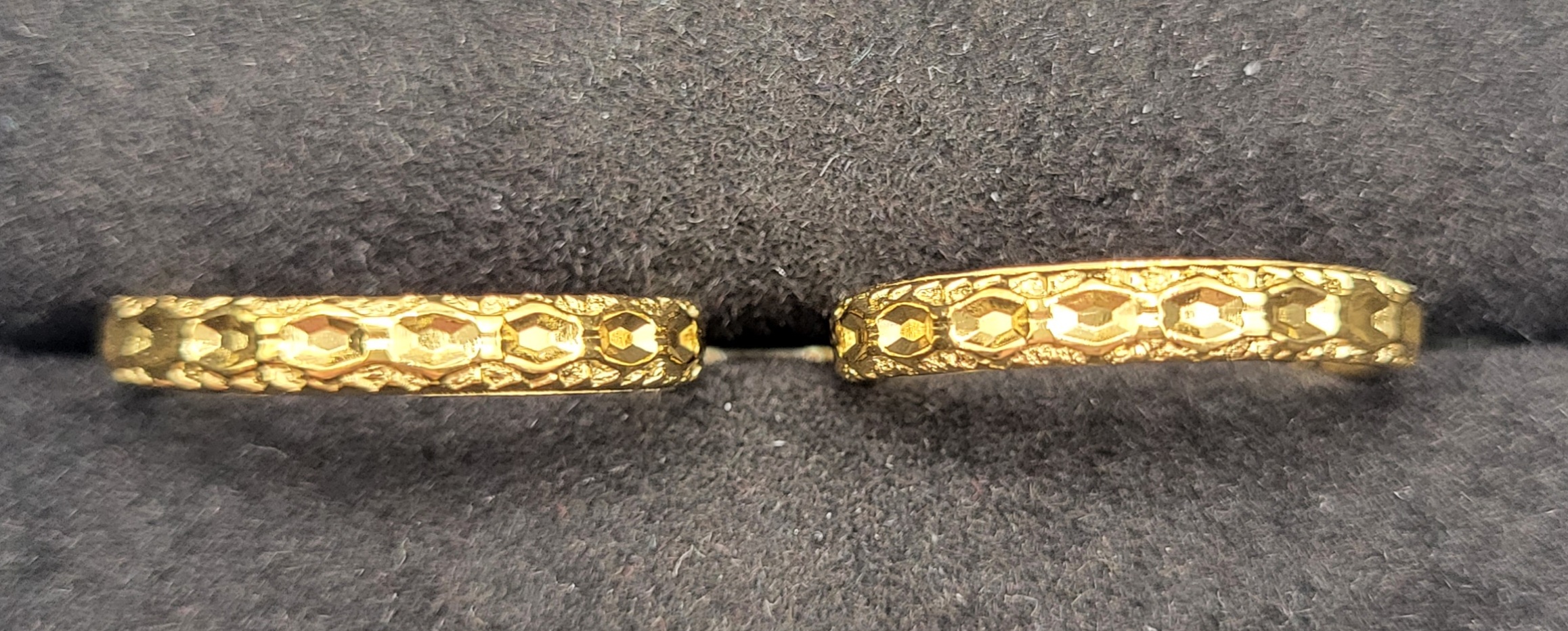 Goudkleurige oorringen met diverse patronen, gemaakt van stainless steel. De oorringen hebben een diameter van 2 cm.