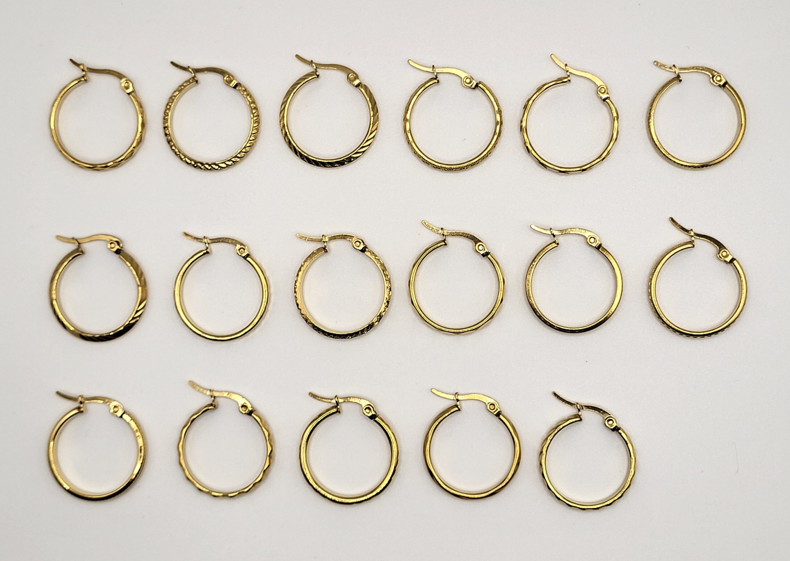 Oorringen van stainless steel, beschikbaar in 17 verschillende patronen.