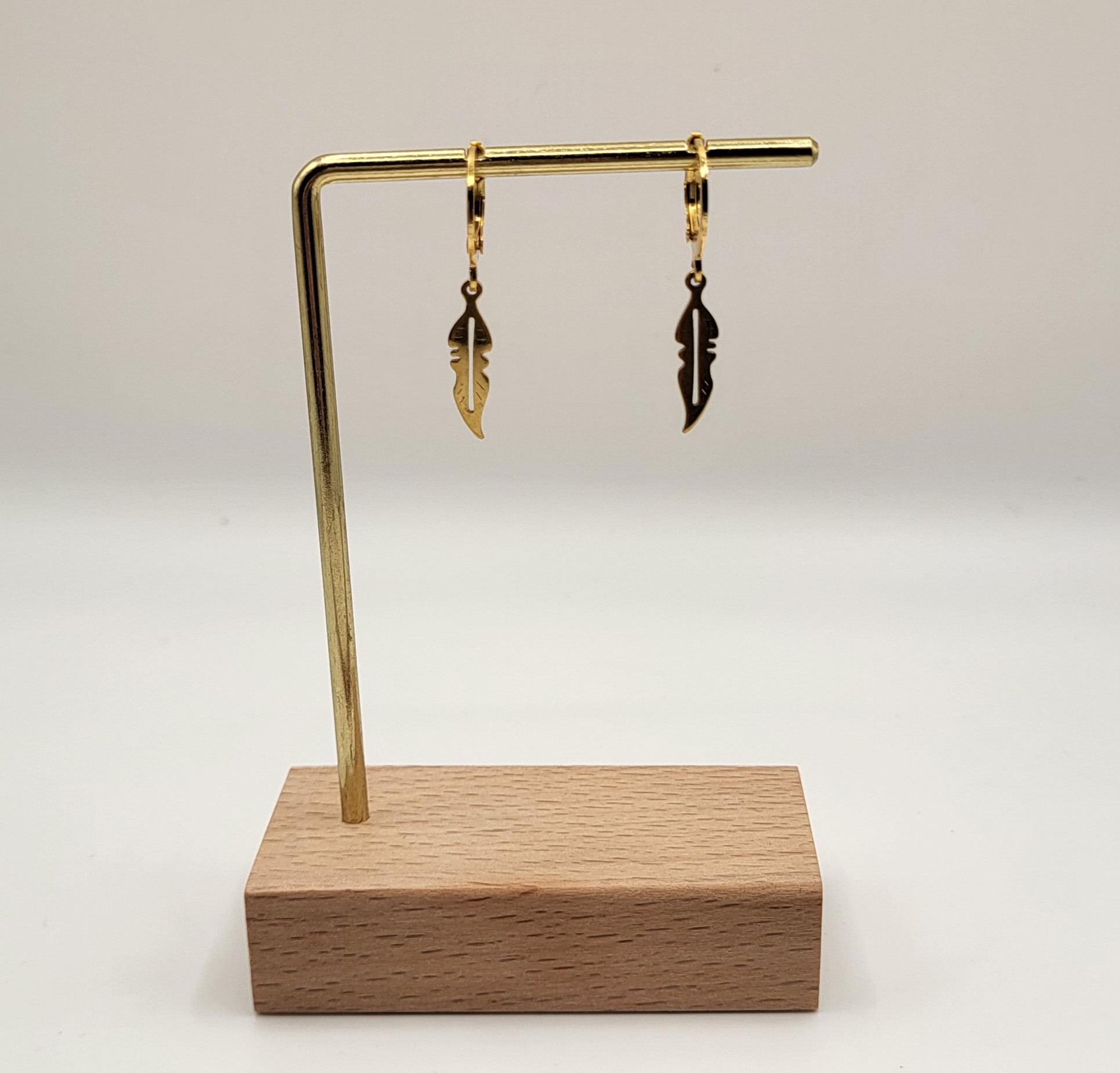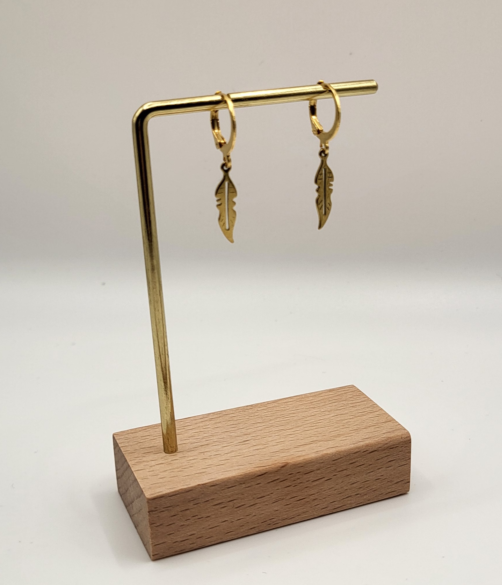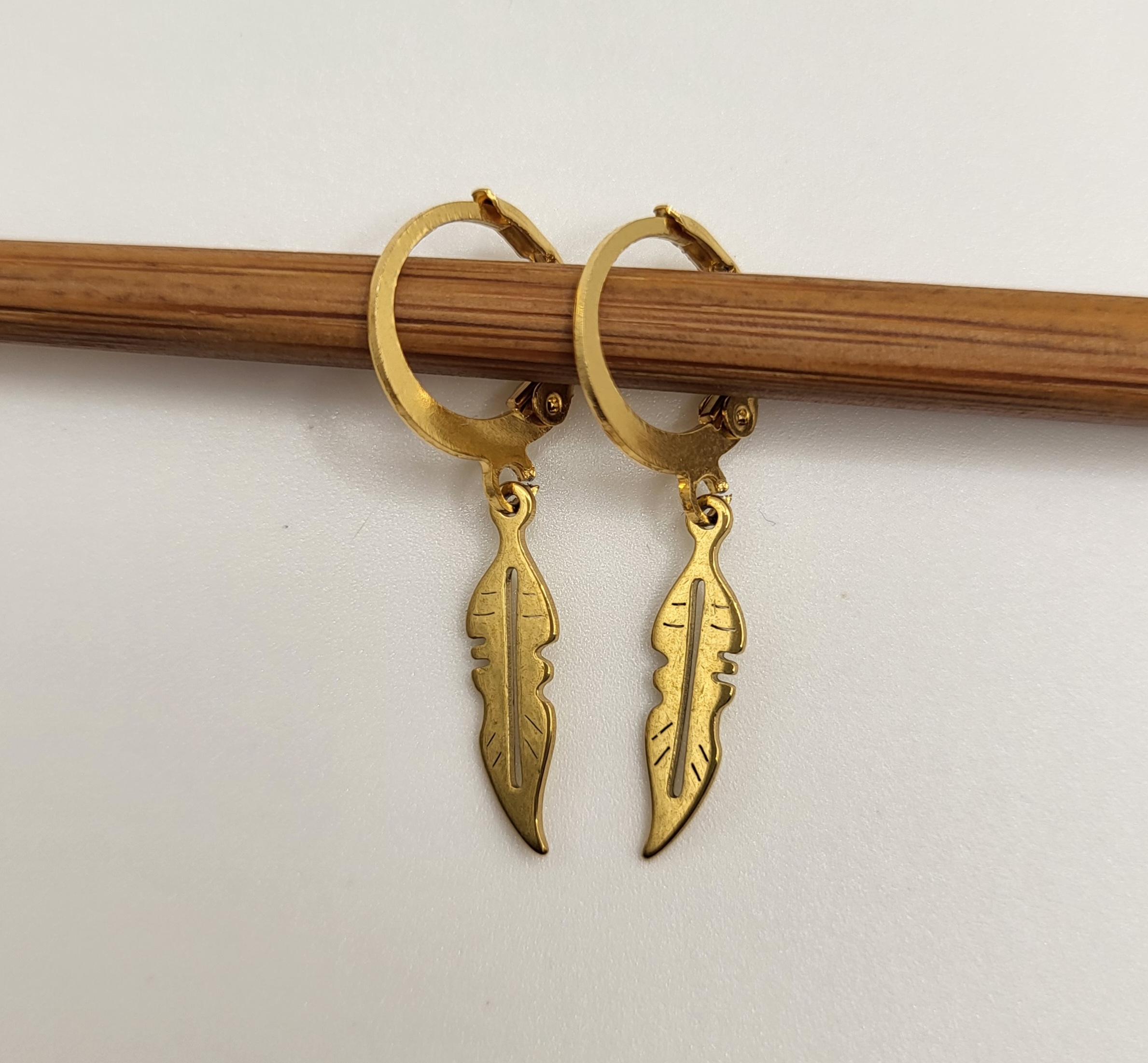Kleine oorringen met veertje, gemaakt van stainless steel.