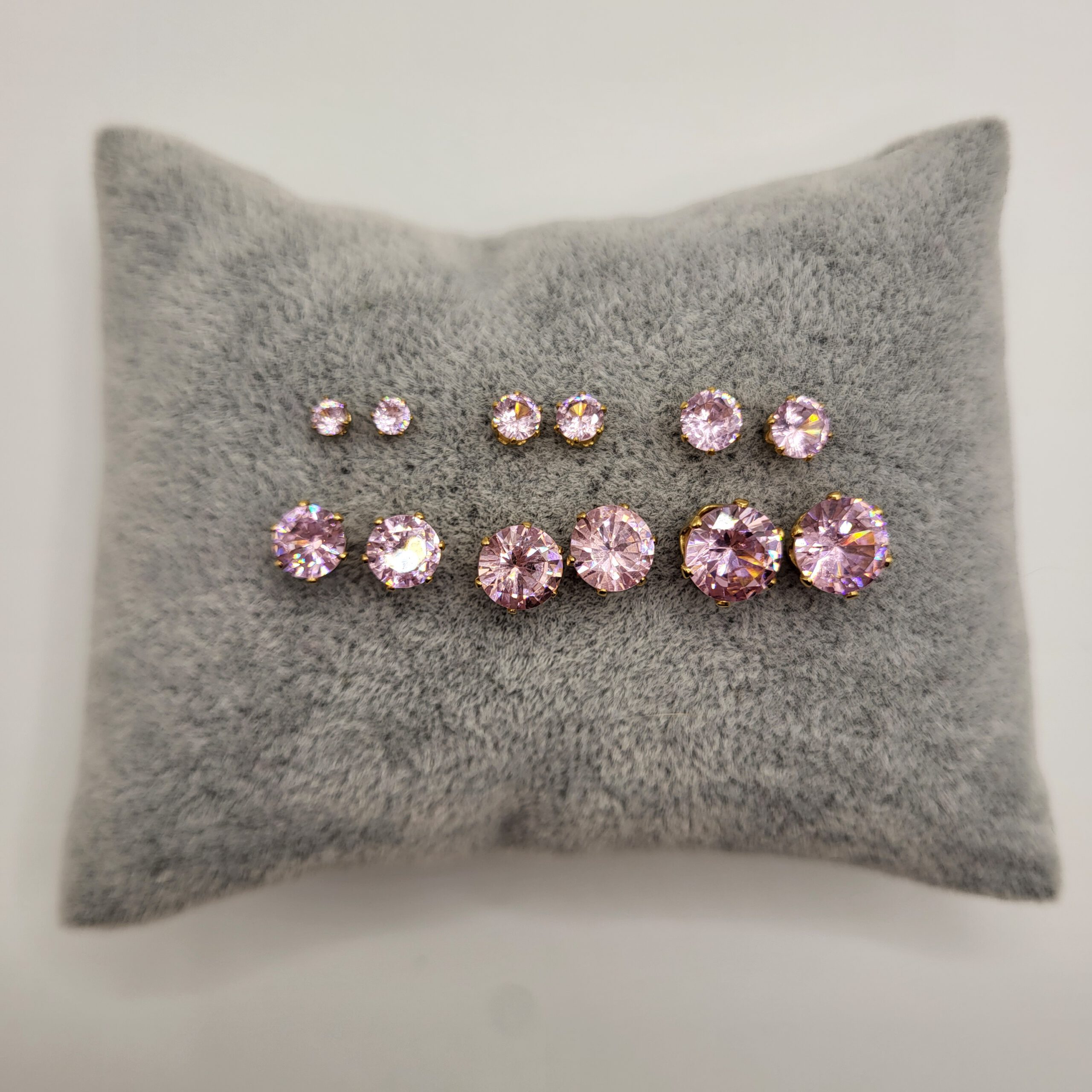 Goudkleurige oorknopjes van stainless steel met roze zirkonia, in 3mm tot en met 8 mm.