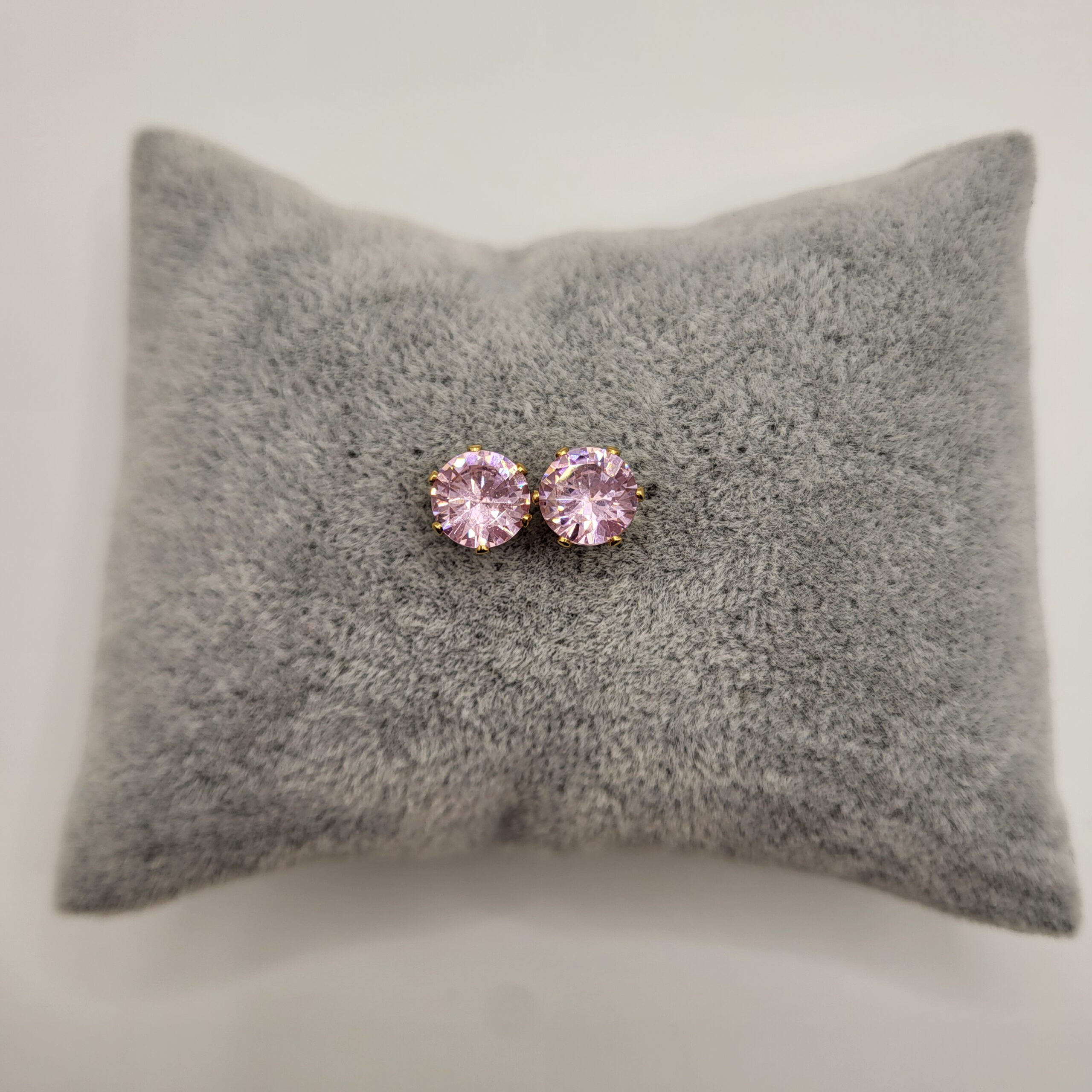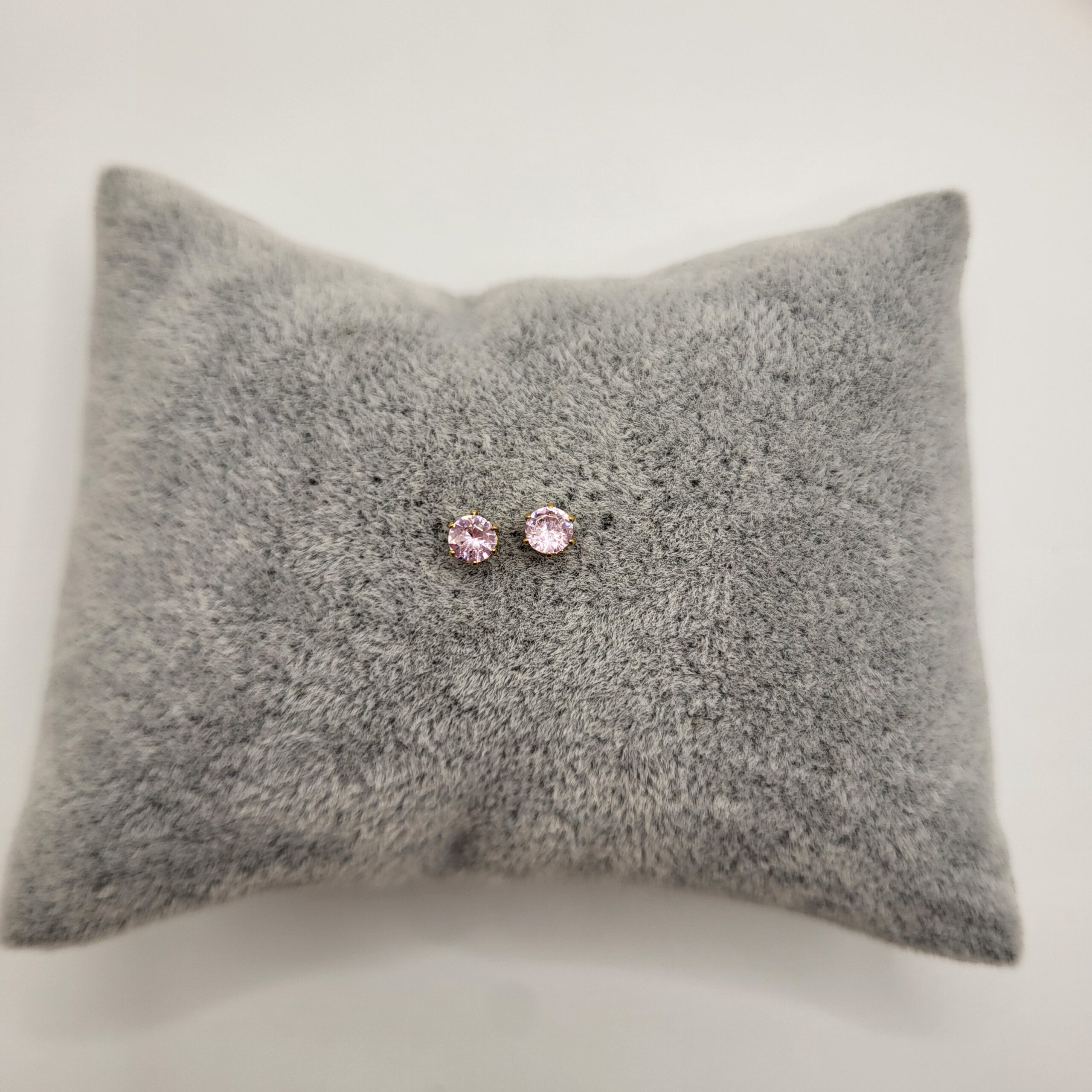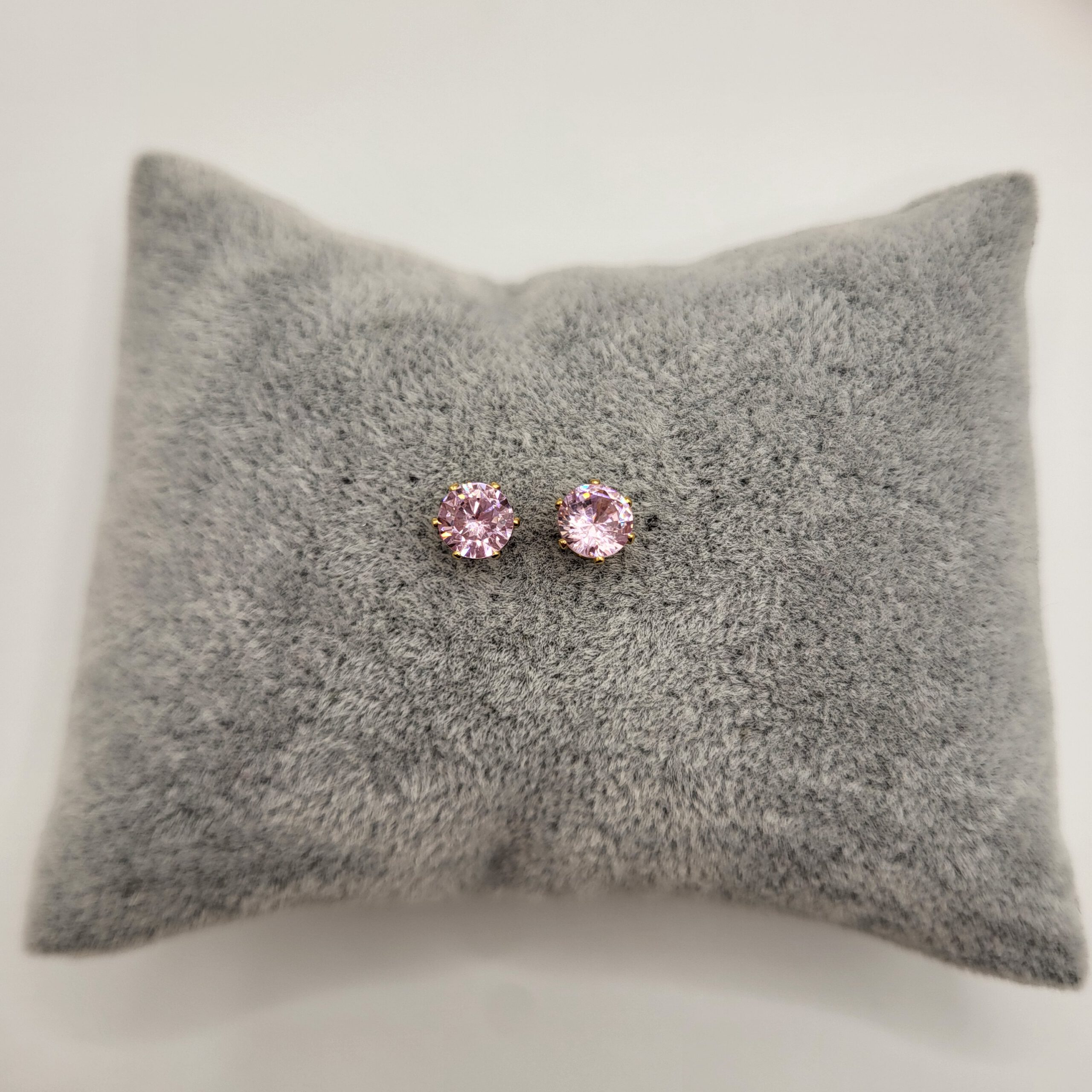 Goudkleurige oorknopjes met roze zirkonia, gemaakt van stainless steel. De oorknopjes zijn beschikbaar in 3mm, 4mm, 5mm, 6mm, 7mm en 8mm.