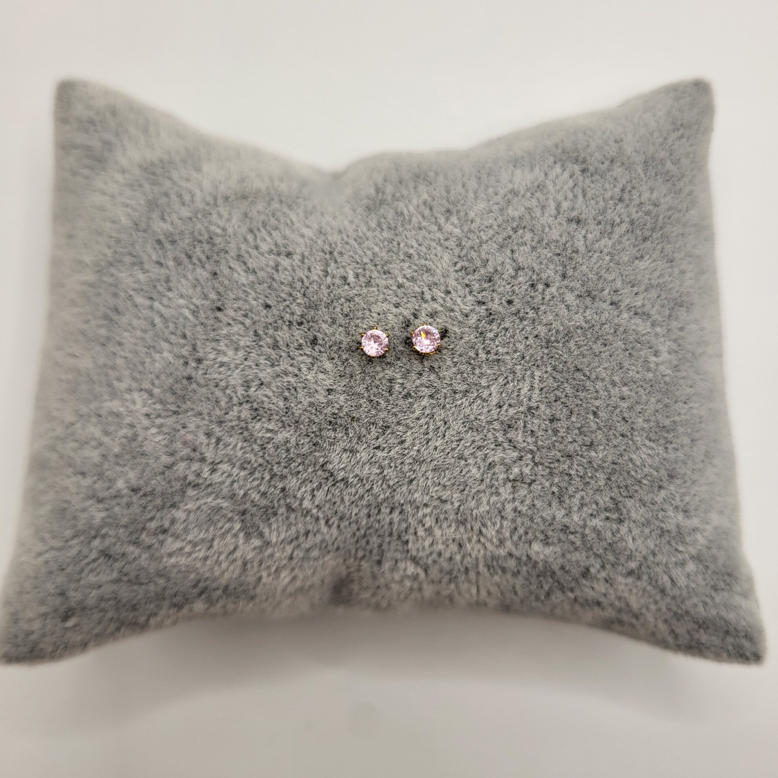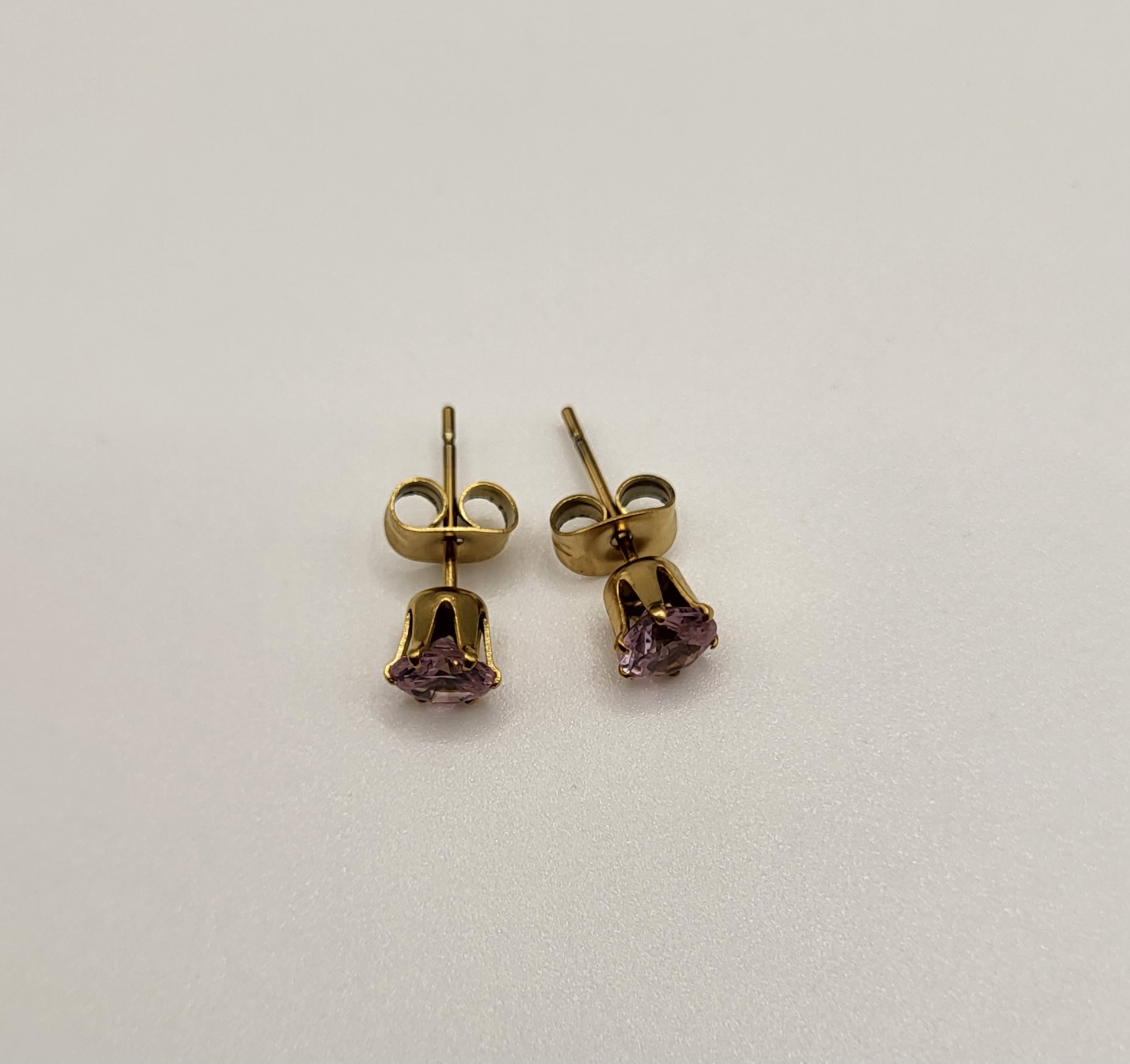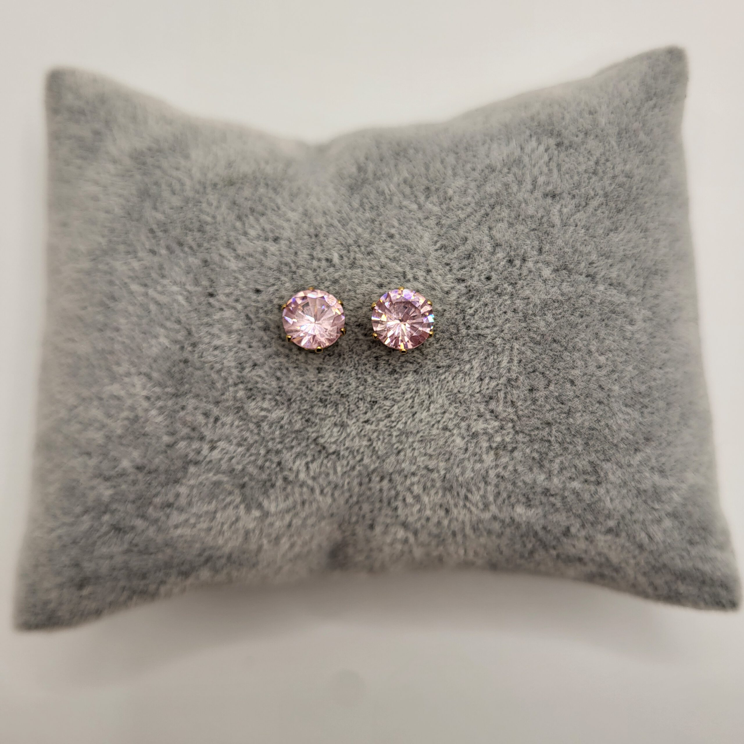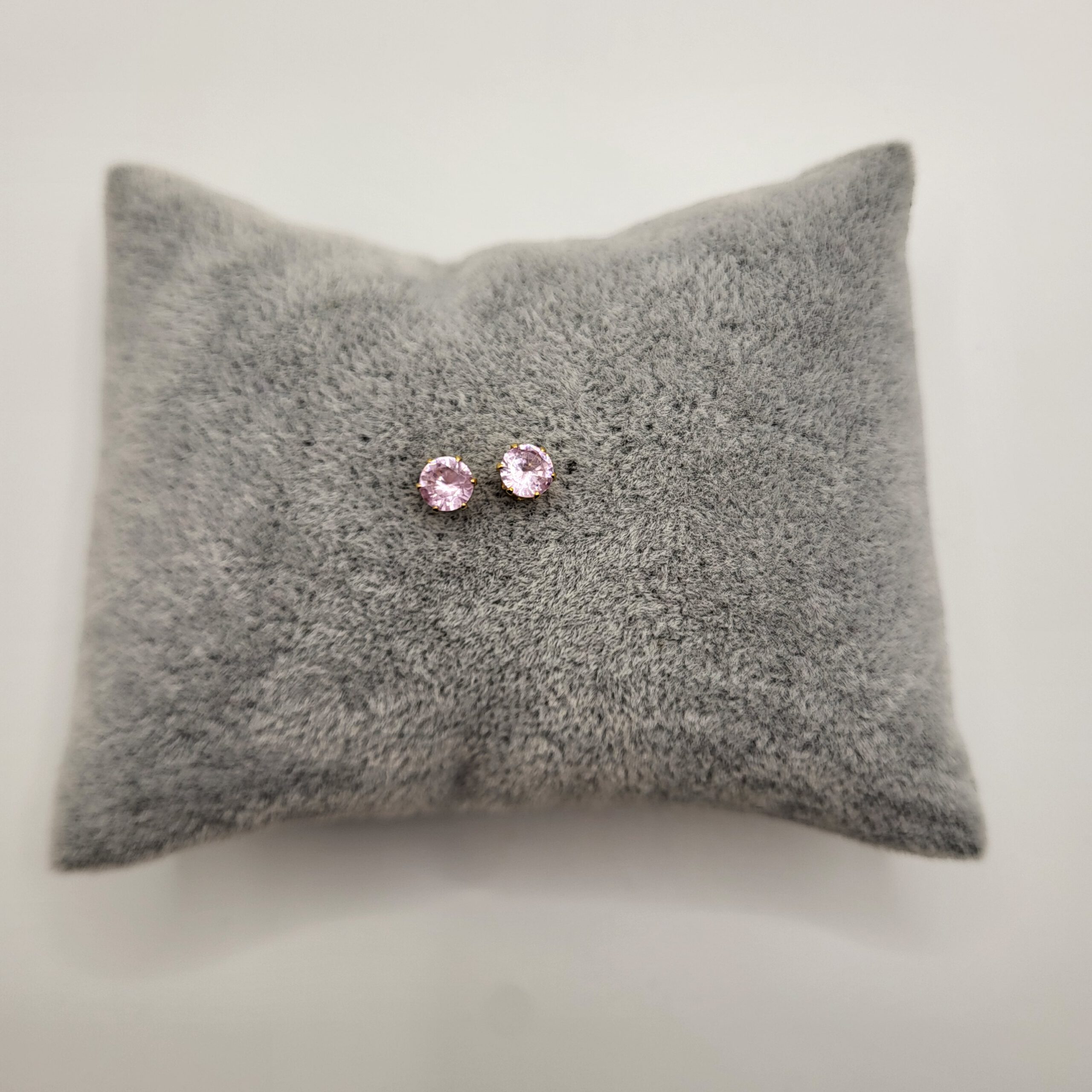 Goudkleurige oorknopjes met roze zirkonia, gemaakt van stainless steel. De oorknopjes zijn beschikbaar in 3mm, 4mm, 5mm, 6mm, 7mm en 8mm.