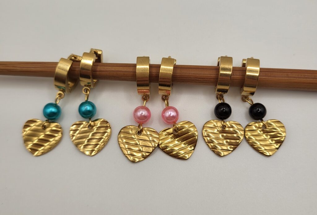 Setje van 3 kralenarmbanden met hartje, gemaakt van stainless steel. Het setje bestaat uit een roze, blauwe en beige armbandje. De armbandjes hebben een lengte van 19 cm met een verlengstukje van 5 cm. *Handmade