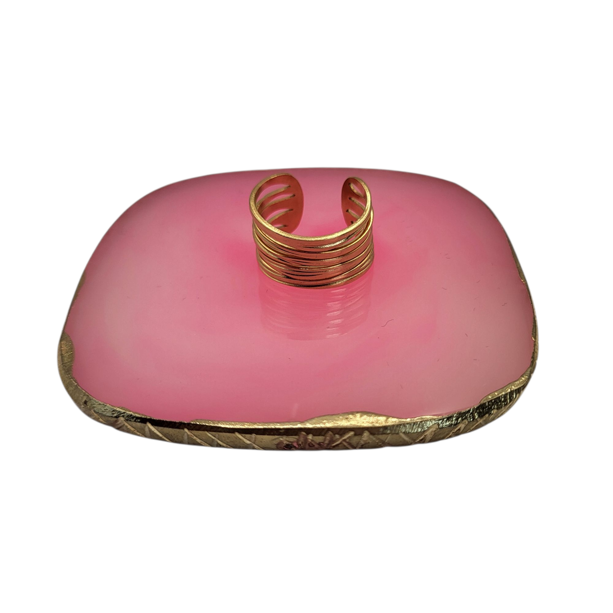 Goudkleurige, verstelbare en brede ring, gemaakt van stainless steel.